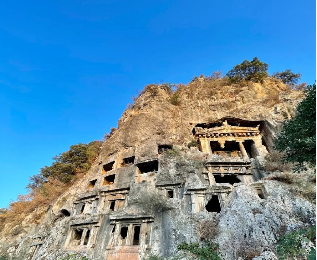 Muğla’nın Fethiye ilçesinde, yüksek kayalık bir yamaca oyulmuş olan Amyntas Kaya Mezarları, Likya medeniyetinin en etkileyici kalıntılarından biridir. M.Ö. 4. yüzyılda tarihlenen bu anıt mezar, Antik Telmessos (bugünkü Fethiye) kentinin aristokratlarına aittir. Mezar, Helenistik mimari tarzında inşa edilmiş olup, tapınak cephesine benzer görkemli bir yapıya sahiptir.