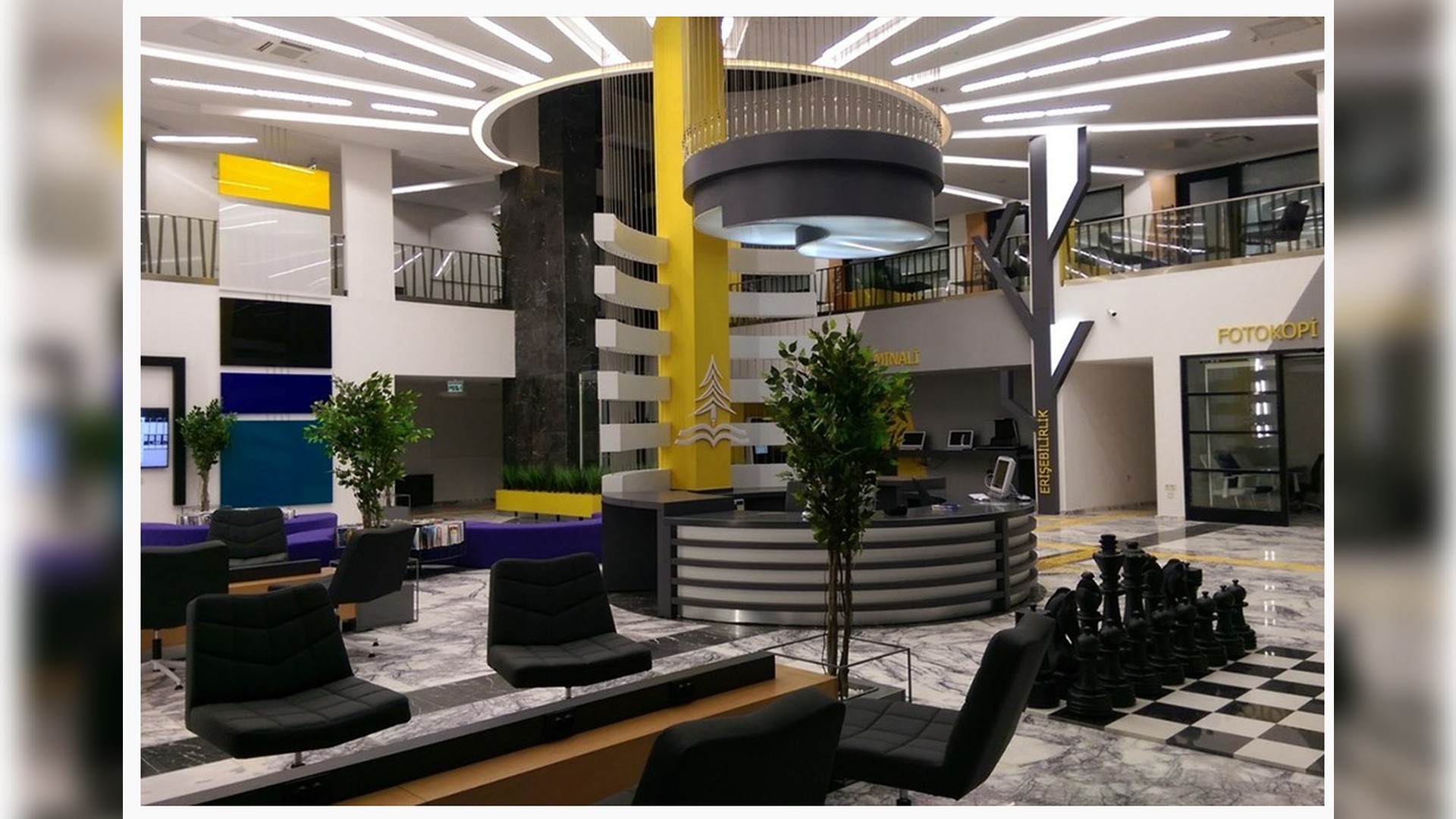 Aynı zamanda lobi ve bekleme yerinde oluşturulan tablet alanında tüm dünyadan akademik yayınlar ve gazeteler tam metin olarak takip edilebilmektedir. Okuma salonlarında kitabın belli bir kısmına ihtiyaç duyulursa kitabı ödünç almak yerine o sayfalarını tarayıp ister kendi usb belleklerine kaydedebileceklerdir.