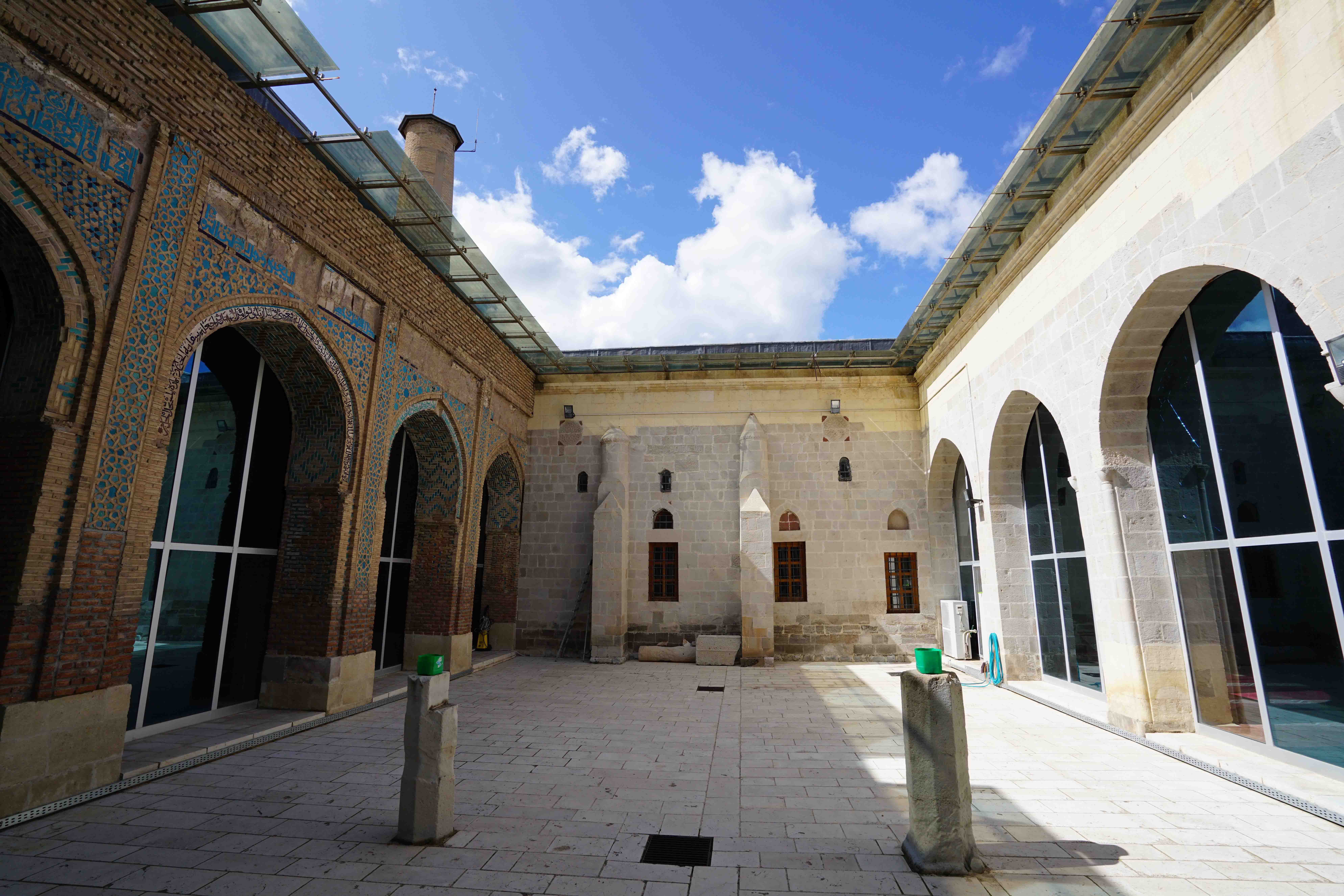 Malatya ili, Battalgazi ilçesinde yer alan Cami, 1224 yılında Anadolu Selçuklu Hükümdarı I. Alaaddin Keykubad tarafından yaptırılmıştır. Kesme taş ve tuğlanın ustalıkla kullanıldığı Cami’nin mihrap önü kubbesi, eyvanı ve havuzlu iç avlusu, Selçuklu tuğla işçiliğinin günümüze ulaşan güzel örneklerindendir. Malatya Ulu Cami, Büyük Selçukluların İran’daki camilerinde görülen dört eyvanlı planın tek eyvanlı plana uyarlanan Anadolu’daki ilk ve son örneğidir. Ulu Cami; iki ayrı bölümden müteşekkil olup bu bölümler, orijinal eyvanlı ve iç avlulu asıl kısım ile kuzeyinde bulunan ve sonradan eklenen binadan oluşmaktadır. Cami’nin üç ana kapısı olup bunlardan ilk olduğu düşünülen, kıble istikametindeki kapı; taş örgü ile kapatılmıştır. Malatya Müzesi’nde bulunan yedi paça kitabenin bu kapıya ait olduğu genel olarak kabul edilmektedir. İkinci kapı, asıl kısmın doğu ucunda olup üzerinde 1274 tarihli kitabesi mevcuttur. Cami’nin batı duvarında bulunan üçüncü kapı ise 1247 tarihini taşımaktadır ve Selçuklu Sultanı II. İzzettin Keykavus zamanında açılmıştır. 1893 depreminde zarar gören kıble duvarı ve mihrabı Sultan II. Abdulhamid’in yardımları ile yenilenmiştir. Asıl minberi Ankara Etnoğrafya Müzesi’nde koruma altındadır. Caminin orta avlusunda yer alan çiniler Selçuklu eserlerinin muhteşem örneklerindendir. Cami, 06 Şubat 2023 depremleri esnasında meydana gelen hasar nedeniyle tamiratta olup geçici olarak ziyarete kapalıdır.