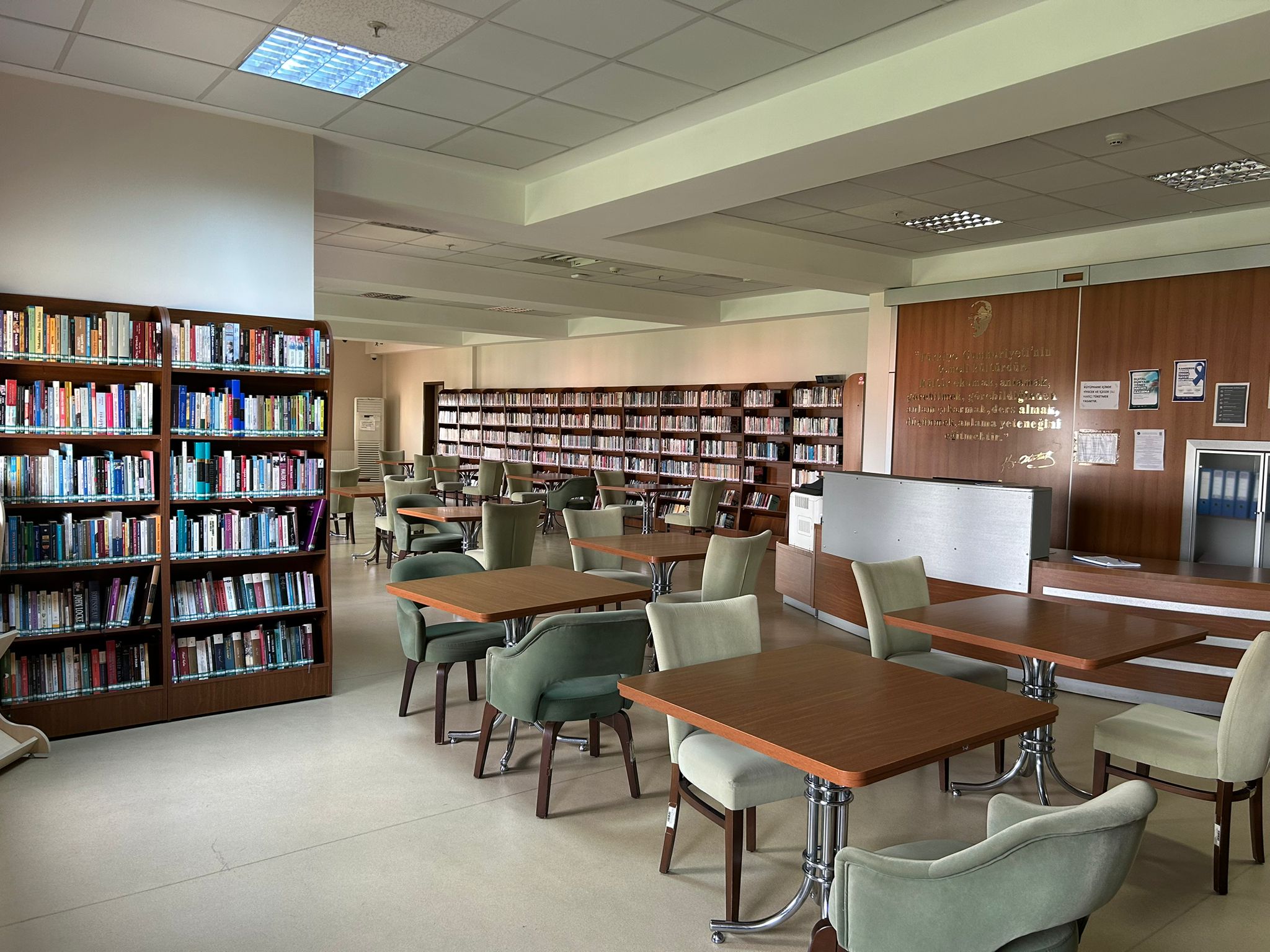 Ziyaret Kuralları ve Bilgilendirme: Kütüphanemizde sessizlik kuralına özen gösterilmektedir. Yiyecek ve içecek kabul edilmemektedir; yalnızca su şişesi bulundurulabilir. Cep telefonlarının sessizde tutulması rica olunur. Kütüphanemize fiziksel erişim kolaydır ve otopark imkânı mevcuttur. Üyelik ve ziyaret ücretsizdir. Okul ziyaretleri için önceden bilgi verilmesi faydalı olacaktır. Kalabalık gruplar için kütüphane yönetimiyle önceden iletişime geçilerek randevu alınması tavsiye edilir.