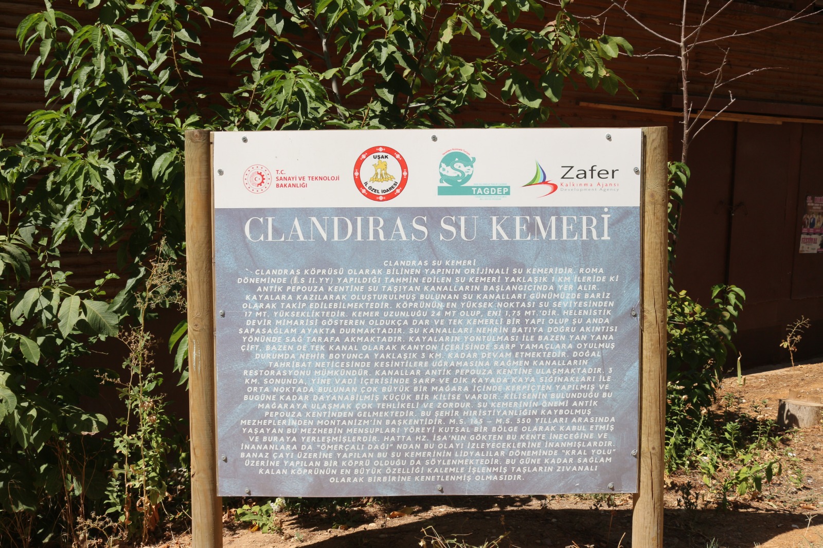 Ulubey Kanyonu içerisinde, Banaz Çayı üzerinde yer almaktadır. Yaklaşık 2 bin 500 yıl önce, Frigyalılar döneminde inşa edildiği tahmin edilmektedir. Kanyonunun doğu kısmında bulunan kaynak suyu, bu su kemeri yardımıyla 2,5 kilometre mesafeden, hemen yakınında bulunan ve büyük bir yerleşim yeri olduğu düşünülen Pepouza Antik Kenti’ne getirilmekteydi. Roma Dönemi mimarisinin izlerini taşıyan Clandras Su Kemeri, dar ve tek kemerlidir. Köprünün iki ucu, dağ kayalarının üzerine oturtulmuş olup uzunluğu 24 metre, yüksekliği ise 17 metredir. Clandras-Pepouza Antik Kenti ekoturizm alanında oluşturulan 7.863 metre uzunluğundaki yürüyüş rotası üzerinde bulunan tarihi kemer ve çevresi, aynı zamanda bölge için önemli bir mesire yeridir. Öğrencilere kemerin bulunduğu doğal çevrenin korunması gerektiği konusunda farkındalık kazandırılabilir. Su kemerinin geçmişteki işlevi ve mühendislik açısından önemi hakkında bilgi verilebilir. Öğrencilerin tarih, coğrafya ve fen bilgisi dersleriyle ilişkilendirmeler yapmaları sağlanabilir. Ziyaret sonrası öğrencilerin tarihi yapının günümüzdeki turistik ve kültürel değerini tartışmaları desteklenebilir.
