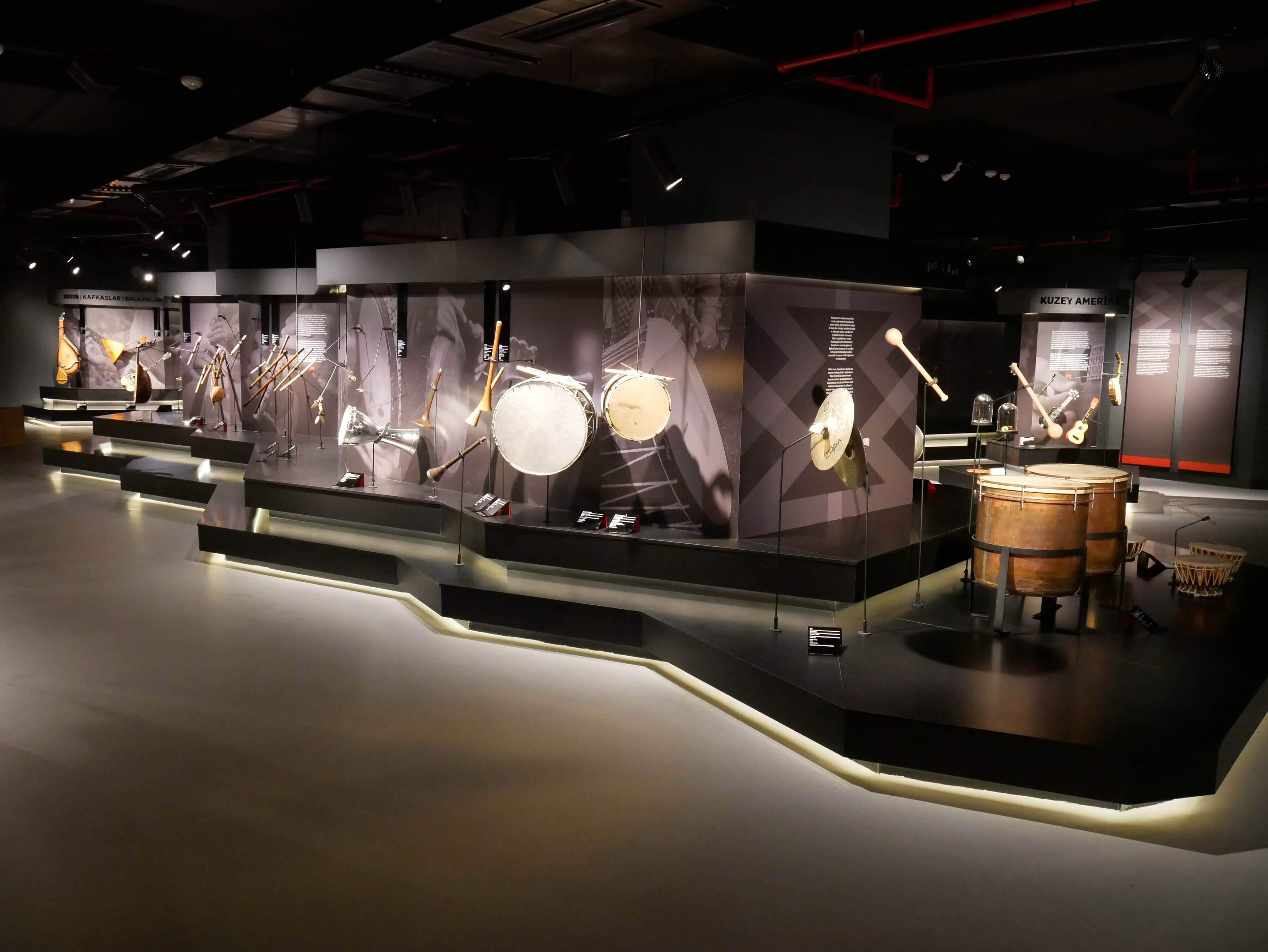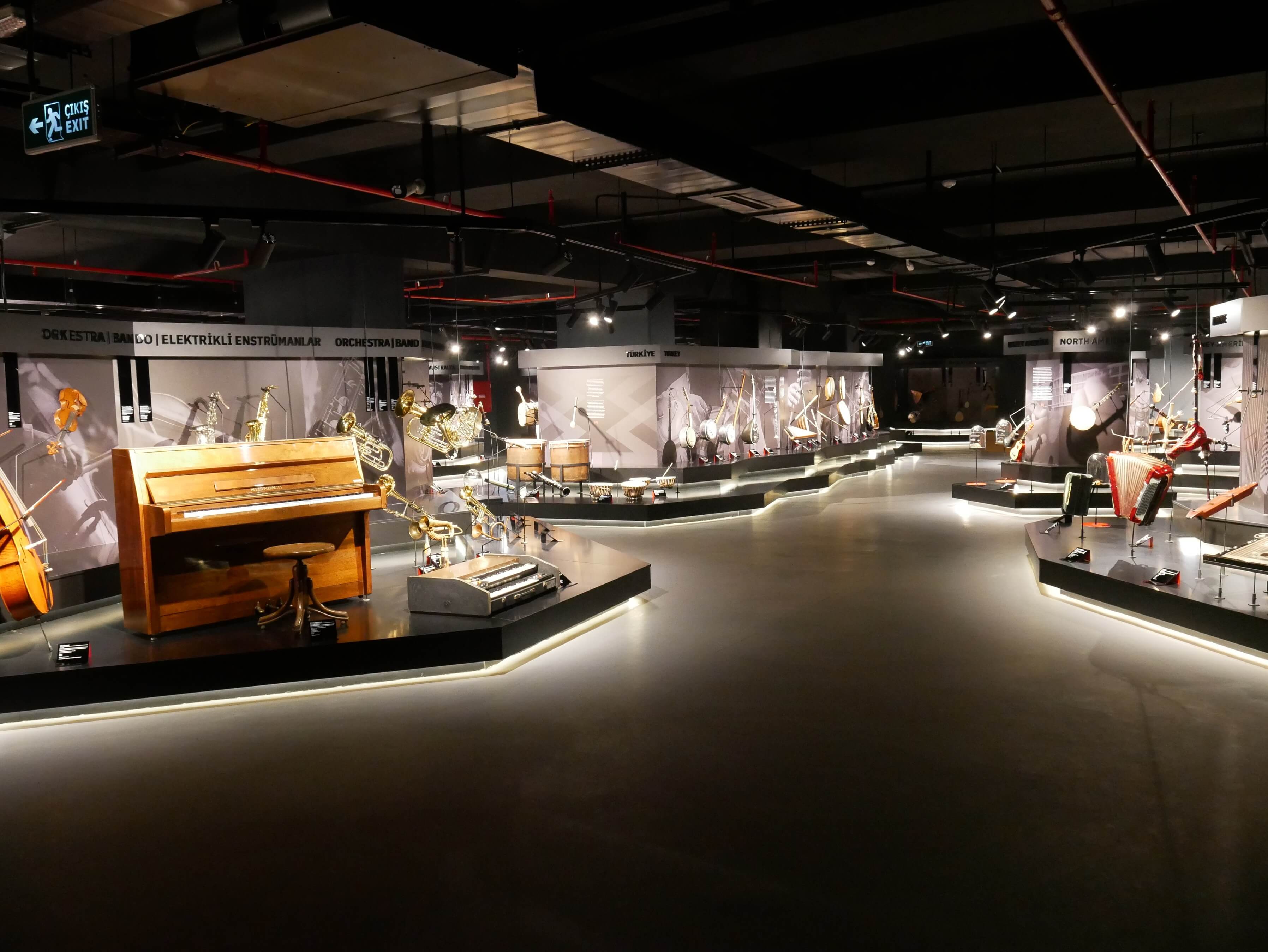 Dünyanın farklı kültürlerine ve müzik geleneklerine ait 200’ün üstünde enstrümanın sergilenmekte olduğu 13 coğrafi adadan oluşan, etnik köken ve milliyetlerden bağımsız olarak kıtalararası bir yolculuğun izinden giderek ziyaretçisiyle buluşan müzemiz, ülkemizin çok yönlü yapısı ve enstrüman çeşitliliğinden dolayı Türkiye adasını merkeze alarak ziyaretçilere müzikal bir yolculuk sunmaktadır. Genel olarak tüm bölgelere baktığımızda kıtalararası kültürel benzerliklerin etkisi ve bulunduğu coğrafyanın yapısal özellikleriyle beraber orada yaşayan yerel halkın izleri de enstrümanlar üzerinde görülebilmektedir. Bu bağlamda coğrafi olarak sıralanmış 13 adacık içerisinde bulunan enstrümanların, aslında Uzak Doğudan Orta Doğu’ya, Afrika’dan Avrupa’ya kadar süregelen değişimi, birbirleriyle olan etkileşimi ve günümüzde nasıl bir formda kullanıldıkları görülmekte ve yerinde dinlenebilmektedir.