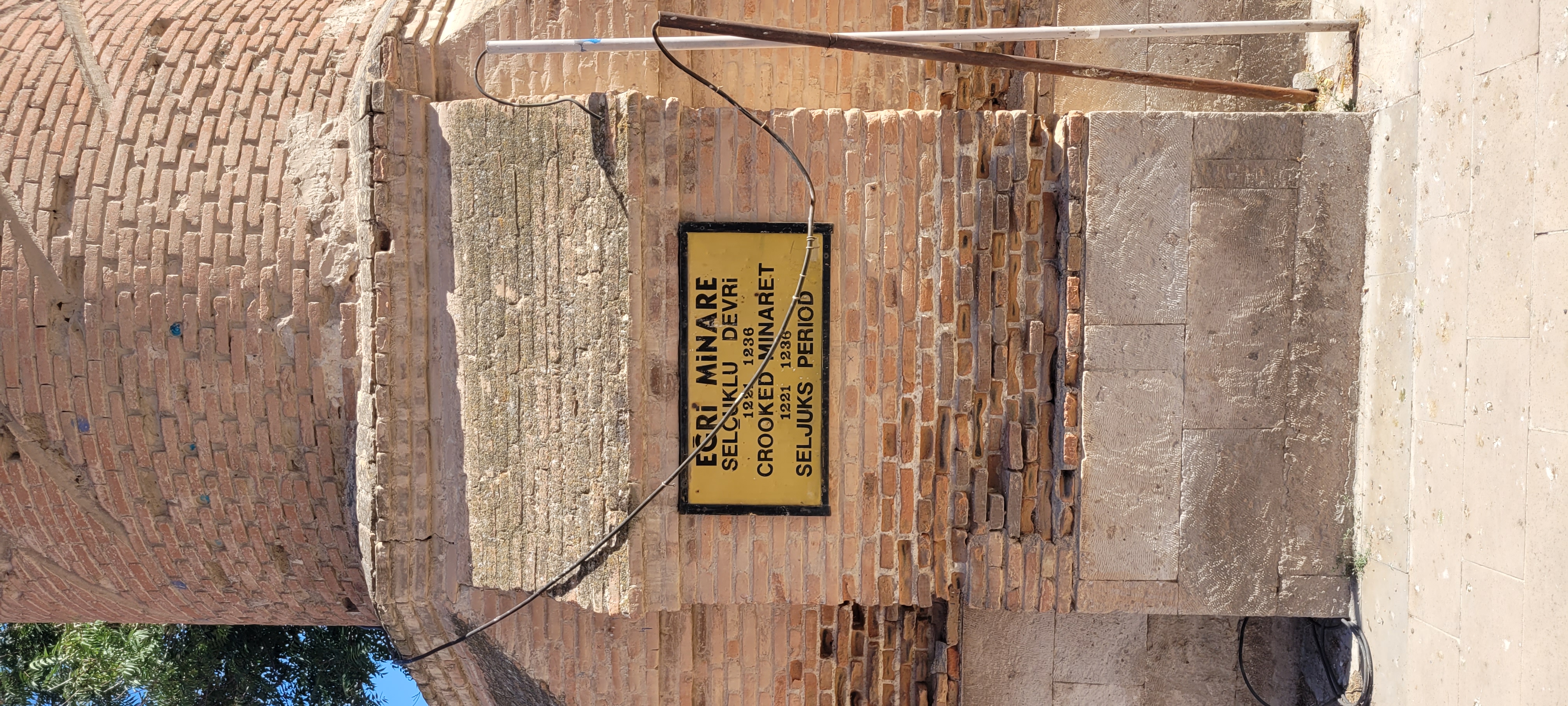 Minare 1973 yılında yapısal risk nedeniyle çelik halatlarla desteklenmiştir. Yıllarca süren bilimsel ölçümlerde bu eğriliğin devam etmediği yani yapının artık sabitlendiği sonucuna ulaşılmıştır. Aksaray’ın simgesi haline gelmiş bu yapı, Selçuklu mimarisinin zarif ve özgün bir örneği olarak yaklaşık 800 yıldır ayakta kalmayı başarmıştır.