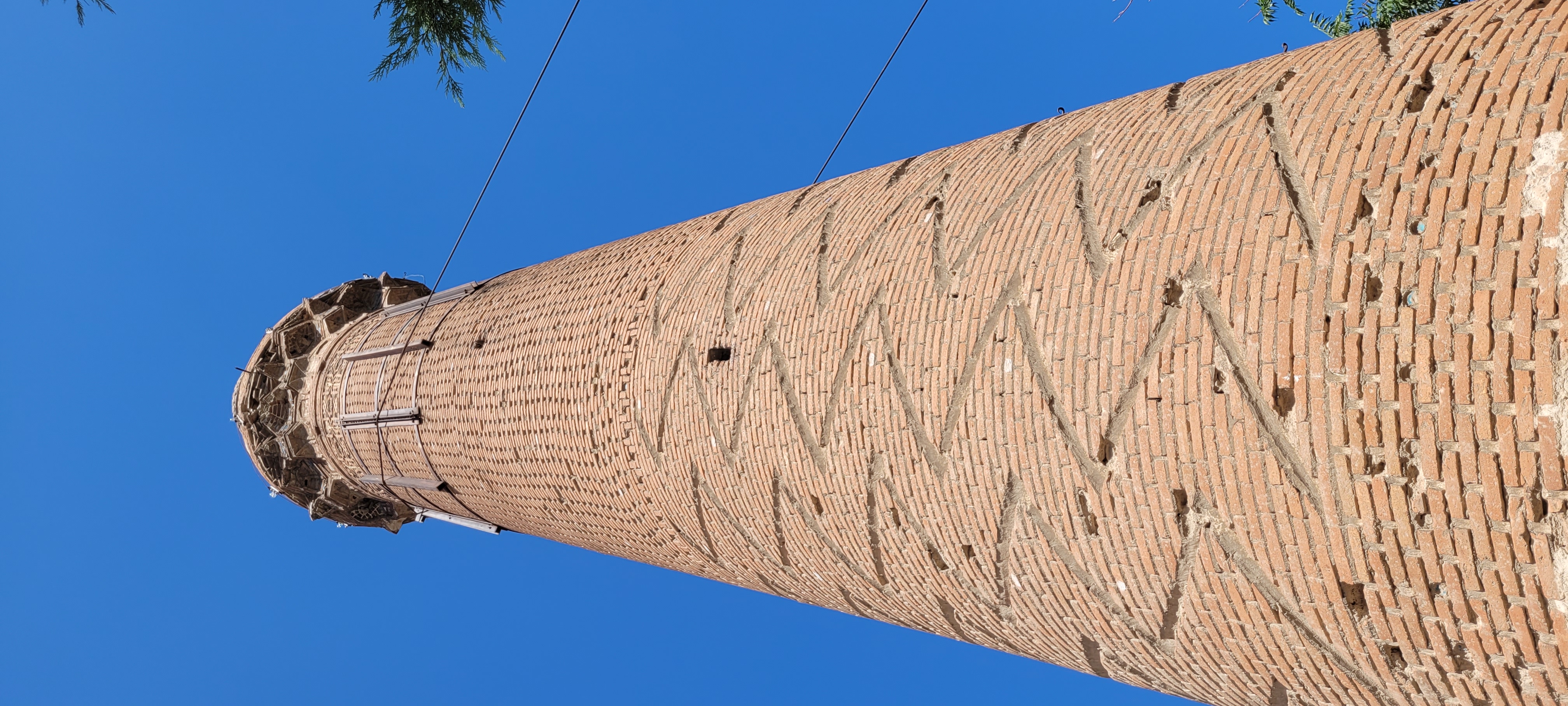 Minare, dört köşeli kare bir kaide üzerine oturan silindirik bir gövdeye sahiptir. Gövde, ince bir silmeyle iki kısma ayrılmıştır: Alt bölümünde zikzak desenler, üst bölümünde ise mavi ve yeşil çini mozaikler vardır. Yaklaşık 30,6 metre yüksekliğinde olan yapının bir şerefesi ve 92 basamaklı merdiveni bulunmaktadır.