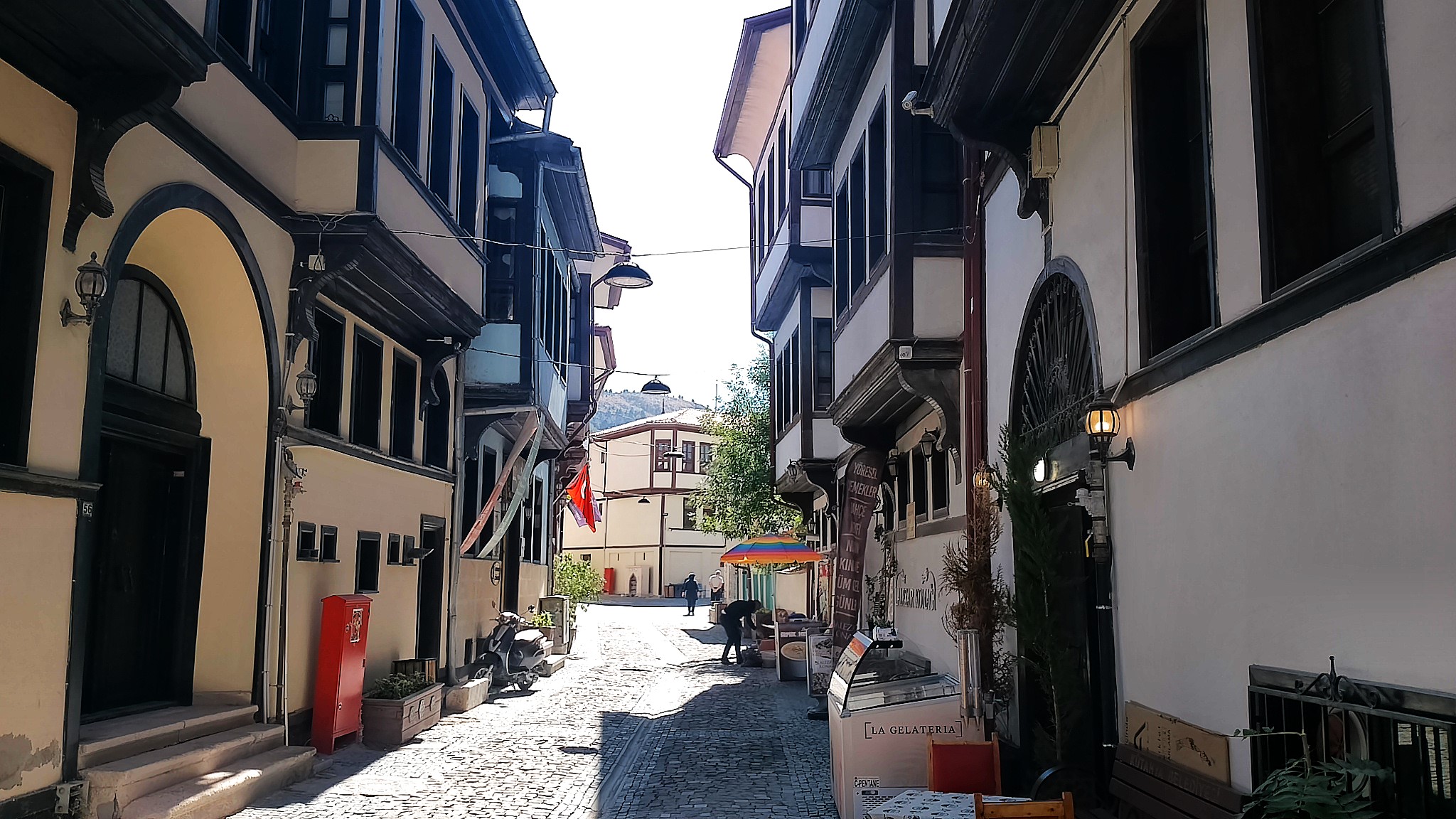19. yüzyıl sivil mimarisinin öne çıkan yapıları olan konaklar; iki ve üç katlı planları, ahşap payandalı çıkmaları, geniş saçakları ve özgün pencere düzenleriyle dikkat çeker. Arnavut kaldırımlı dar sokak boyunca sıralanan evler restore edilerek günümüze kazandırılmıştır.