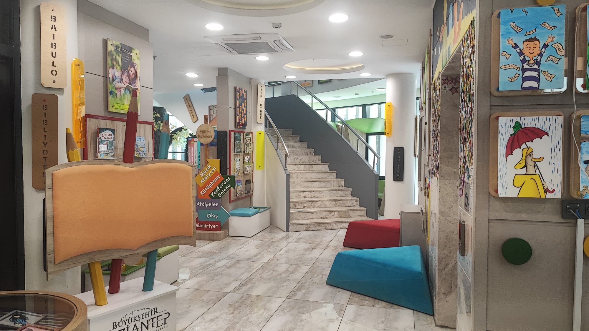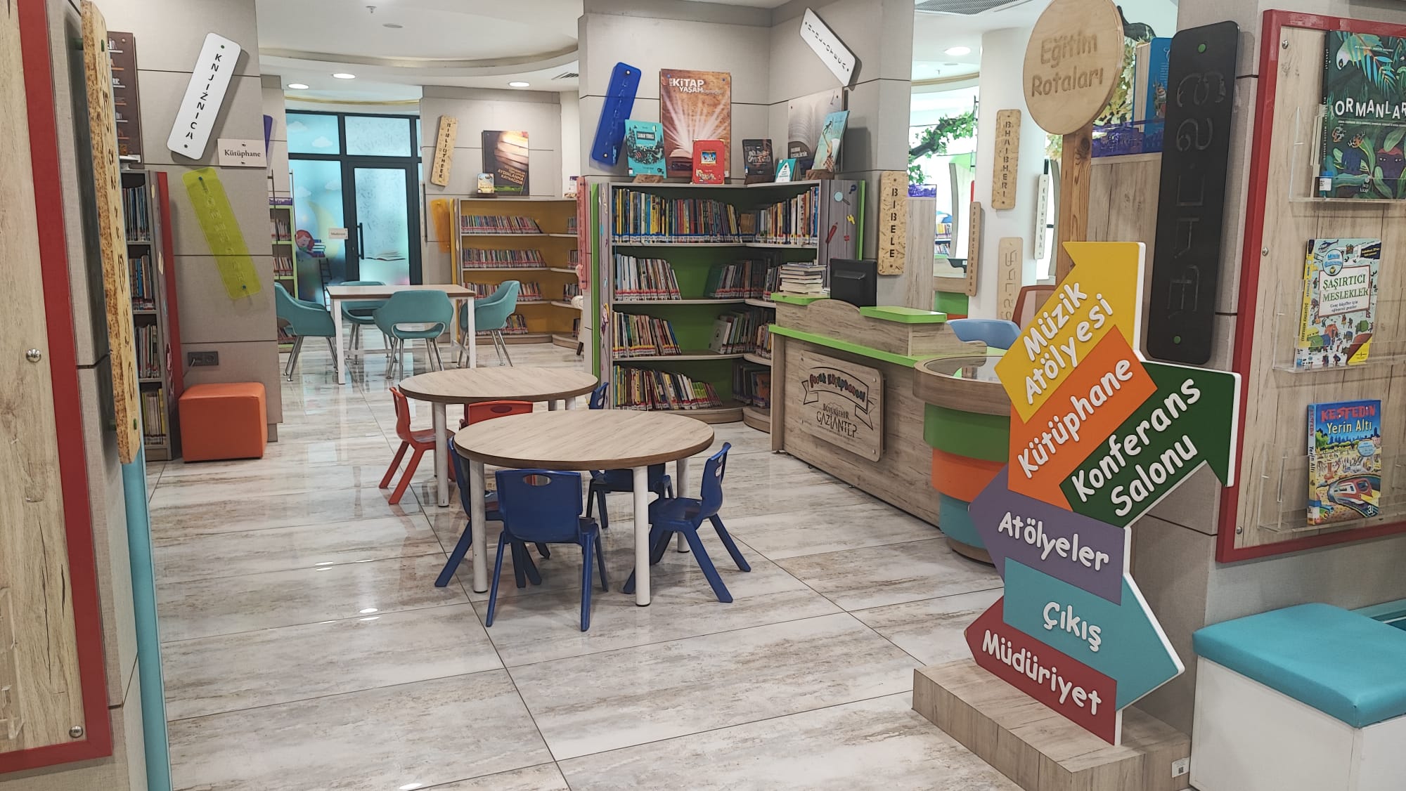 Kütüphanede çocukların, kültürel ve sanatsal becerilerini geliştirme amaçlı; robotik kodlama, yaratıcı drama, masal anlatımı, müzik, resim, mozaik gibi çeşitli alanlarda atölyeler mevcuttur. Çocukların yaptıkları çalışmaları sergileyebilecekleri sergi alanları, uygulama bölümleri, dinlenme ve okuma alanları ile zengin uygulama hizmetleri sunulmaktadır.
