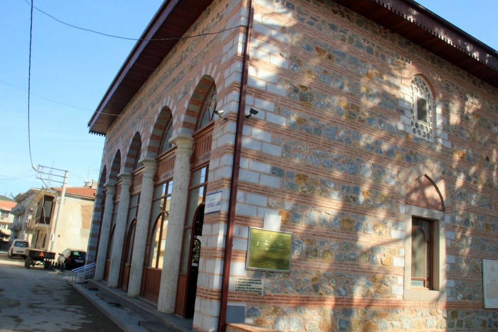II. Bayezit’in oğlu Şahinşah’ın eşi Mükrime Hatun tarafından 16. yüzyılda yaptırılmıştır. Caminin ve türbenin duvarları Sultan IV. Murat tarafından çinilerle kaplatılmıştır. Kurtuluş Savaşı sırasında Yunanlılar tarafından tamamen yıkılan cami, 1950’de aslına benzer boyutlarda yeniden inşa edilmiştir. Eski camiye ait sadece minare ayaktadır. Minarenin külah bölümü yıkılmıştır. Caminin hemen yanındaki türbede Eşref-i Rumi yatmaktadır.