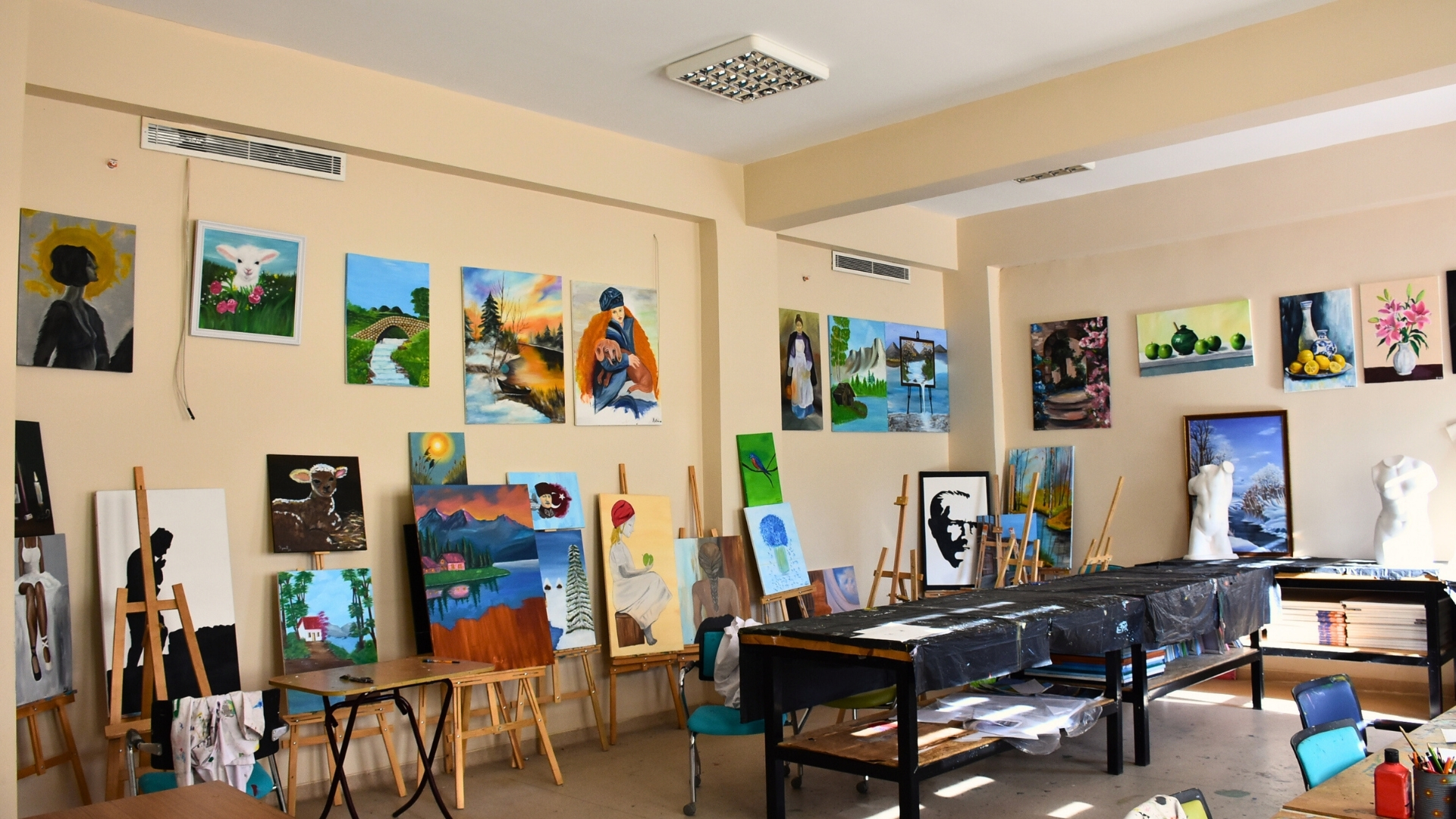 Kurum bünyesindeki Güzel Sanatlar Atölyesi’nde; ebru, tezhip, taş baskı, rölyef, karakalem, yağlı boya ve ahşap boyama gibi sanatsal çalışmalar yürütülmektedir. Ayrıca el sanatları kapsamında nakış, punch nakışı, amigurumi, tığ işi örgü ve temel dikiş uygulamaları uzman eğitmenler eşliğinde gerçekleştirilmektedir.
