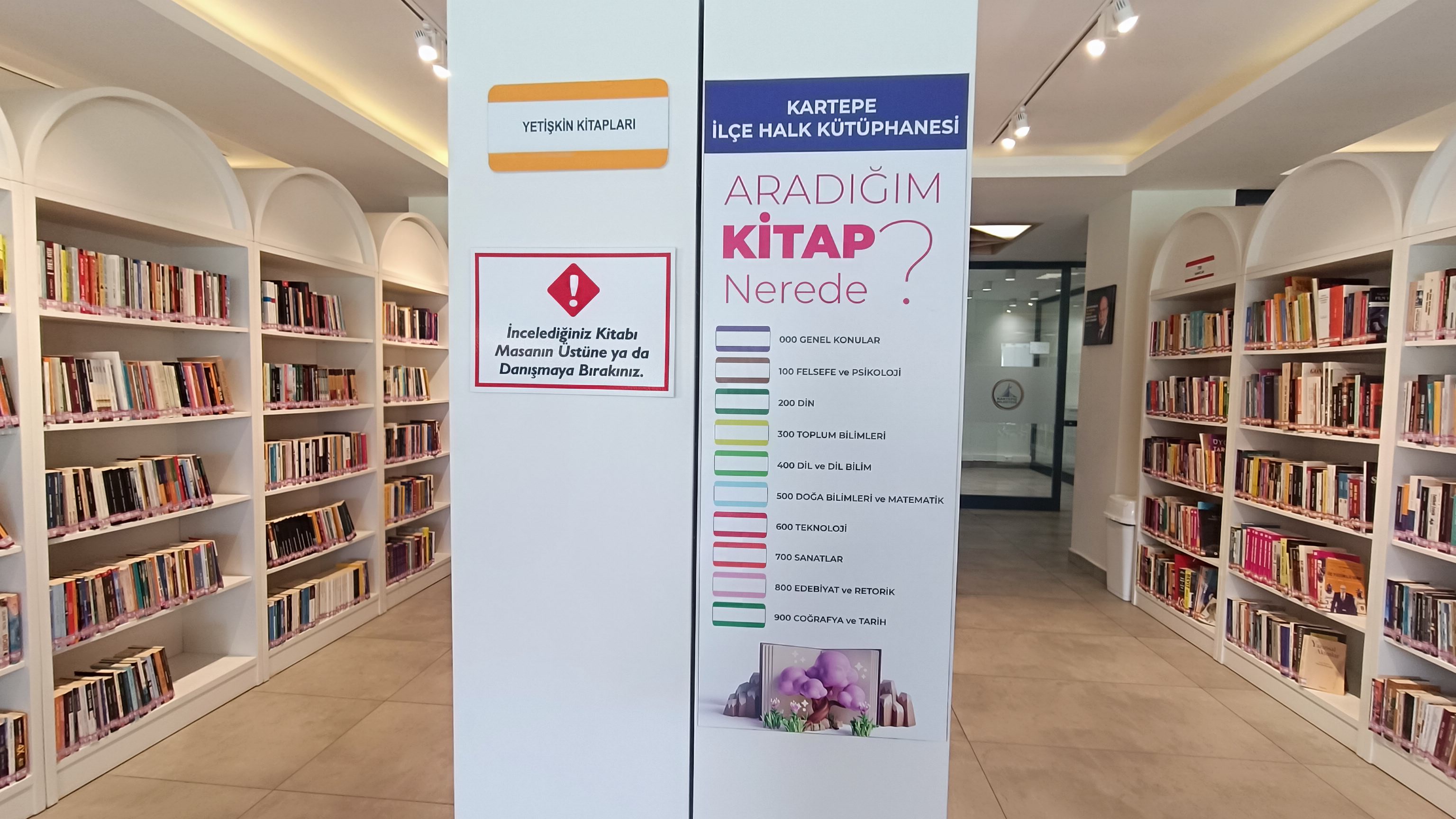 Kütüphanede gruplar ve bireyler için serbest çalışma salonlarının yanı sıra; bebek, çocuk ve gençlik bölümleri, eğitim sınıfları, toplantı ve sergi salonu, oyun alanları, atölye ve etkinlik bölümleri ile hizmet verilmektedir. Kütüphanede sunulan 150 oturum kapasitesi, 18 bilgisayar masası ve yaklaşık 17.000 kitabın yanı sıra edebi, kültürel, bilimsel, sanatsal etkinlikler, sportif faaliyetler, atölyeler, söyleşiler, aile seminerleri ve farkındalık eğitimleri ile Kocaeli Kartepe’ye değer katıyor. Mimari olarak yaklaşık 1.000 m² olan bu modern kütüphane; 17.000 kitap, çocuk kitapları bölümü, Z Kütüphane (sessiz alan), kafeterya, bilgisayar kullanım alanları ve ekip çalışmaları için özel bölümlerle donatılmıştır.