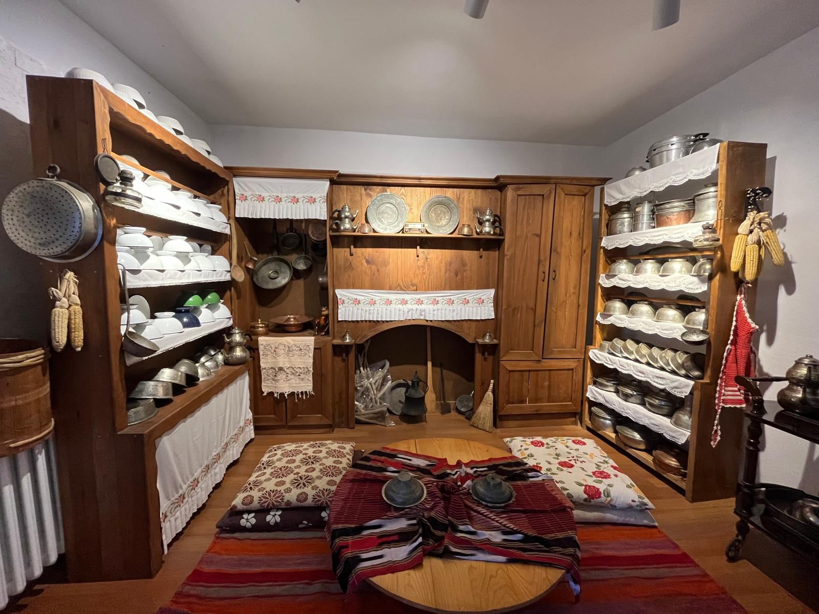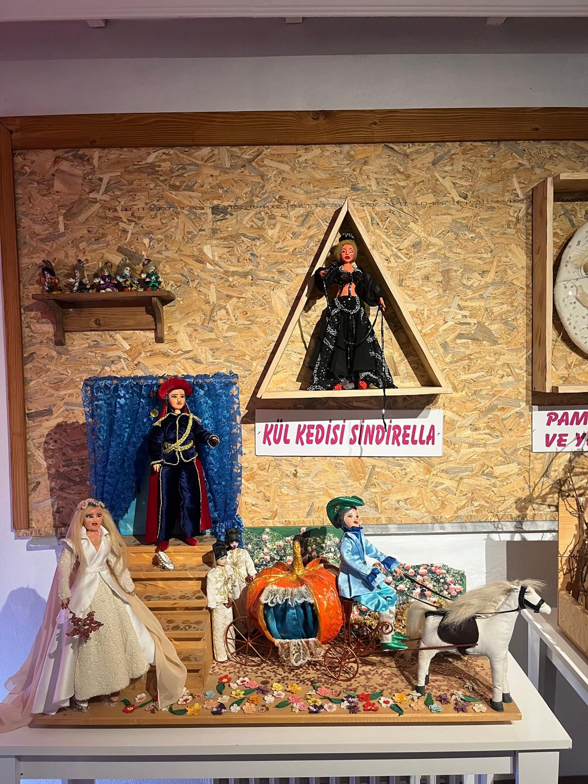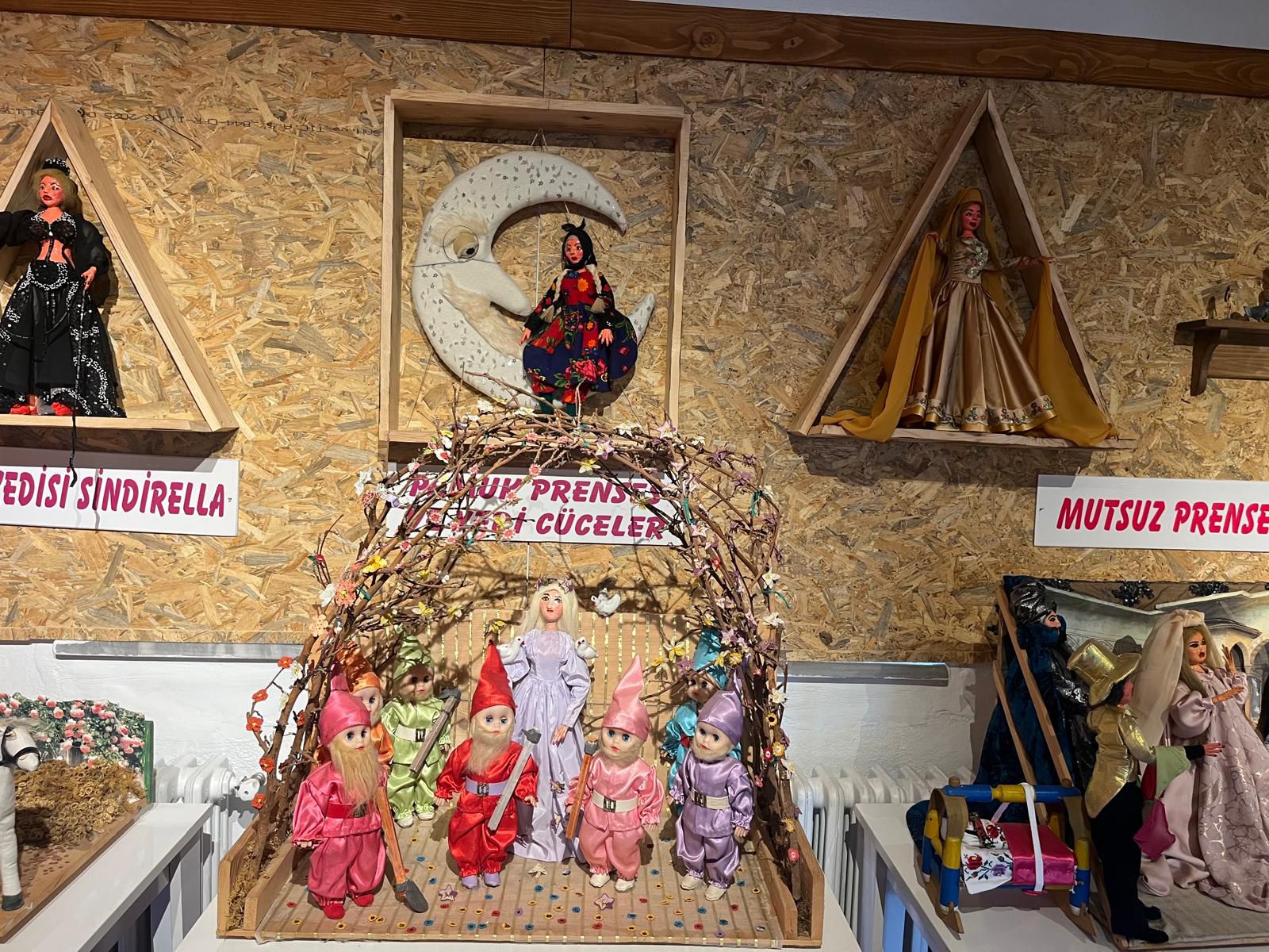 Geleneksel giysiler ve günlük yaşam sahneleriyle donatılmış kitre bebekler sergilenir,