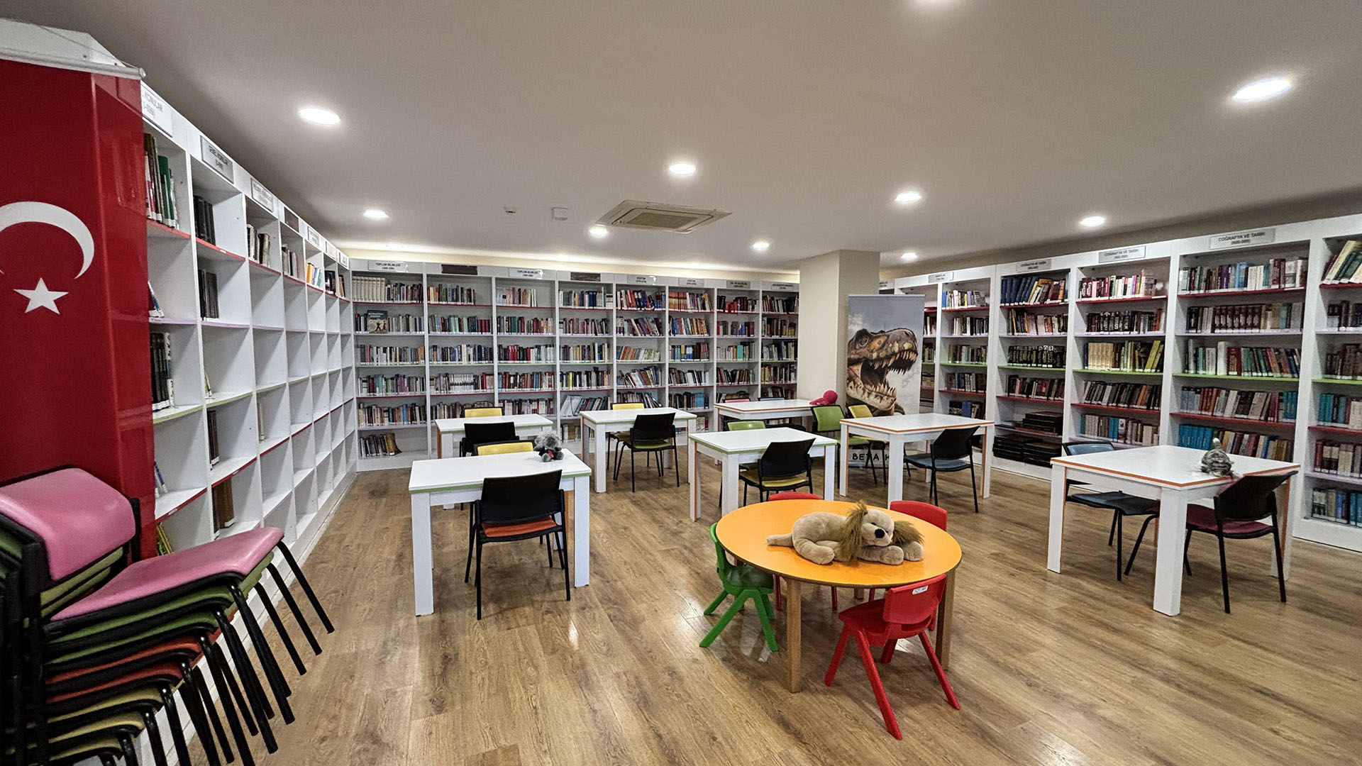 Dünya klasiklerinden Türk edebiyatının seçkin örneklerine, tarihten felsefeye birçok türde 20.000'den fazla kitaba sahip kütüphanede ücretsiz çay ve kahve servisleriyle, çocukların çalışmaları için sakin ve konforlu bir ortam sağlanmakta, üniversite sınavına hazırlanan gençler için de ücretsiz test kitapları temin edilebilmektedir. Kütüphanede ücretsiz kablolu bağlantı ağı (Wi-Fi) hizmeti de mevcuttur.