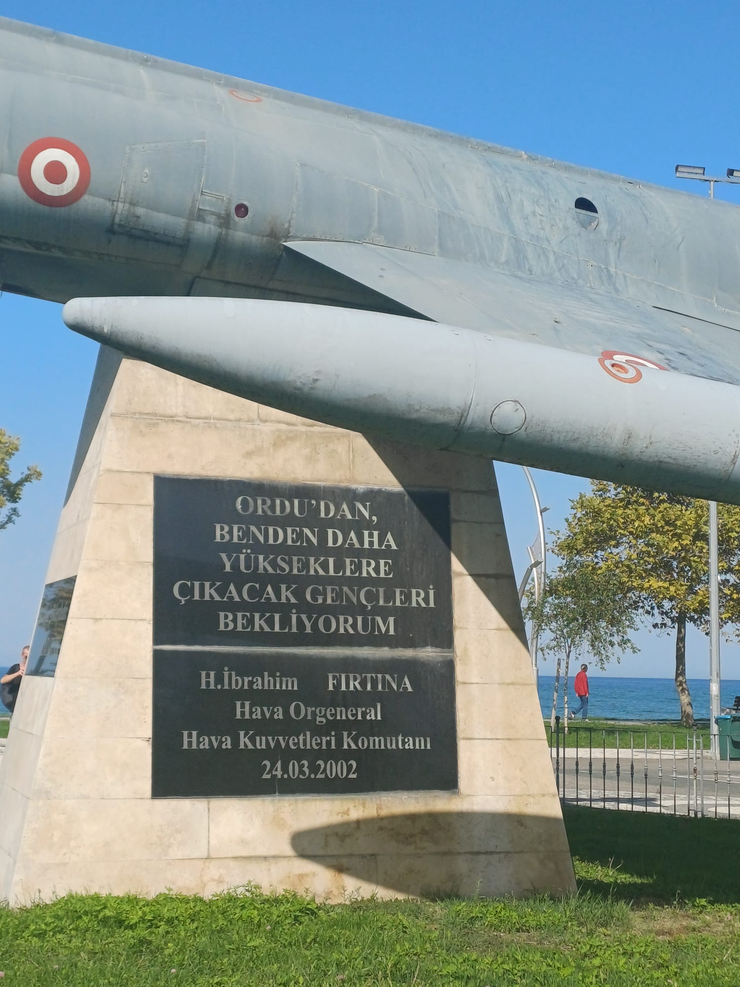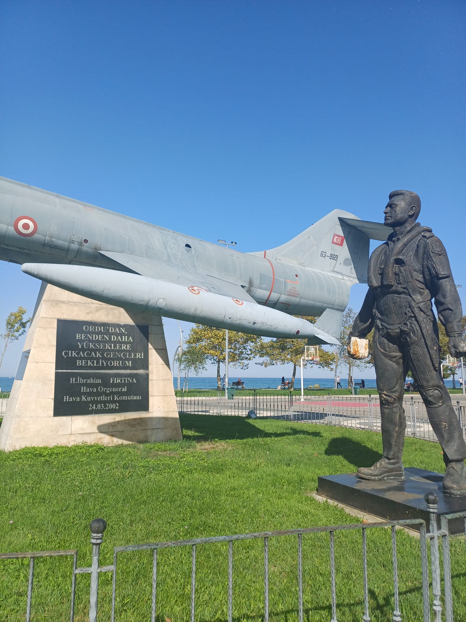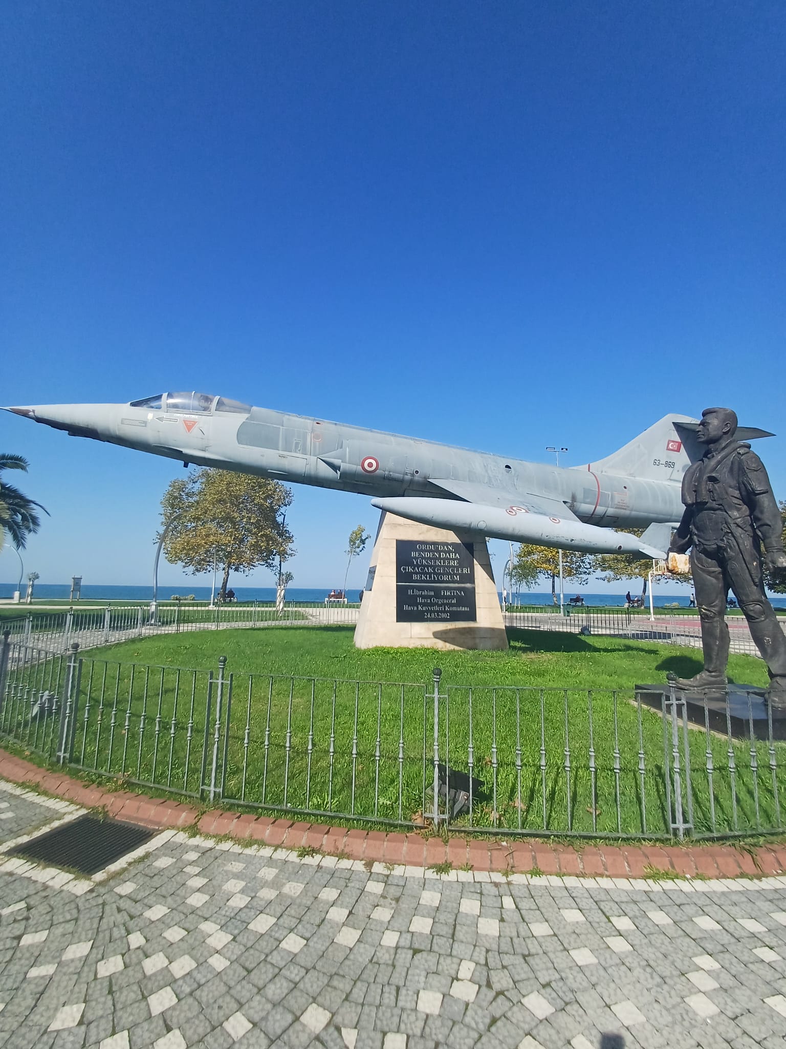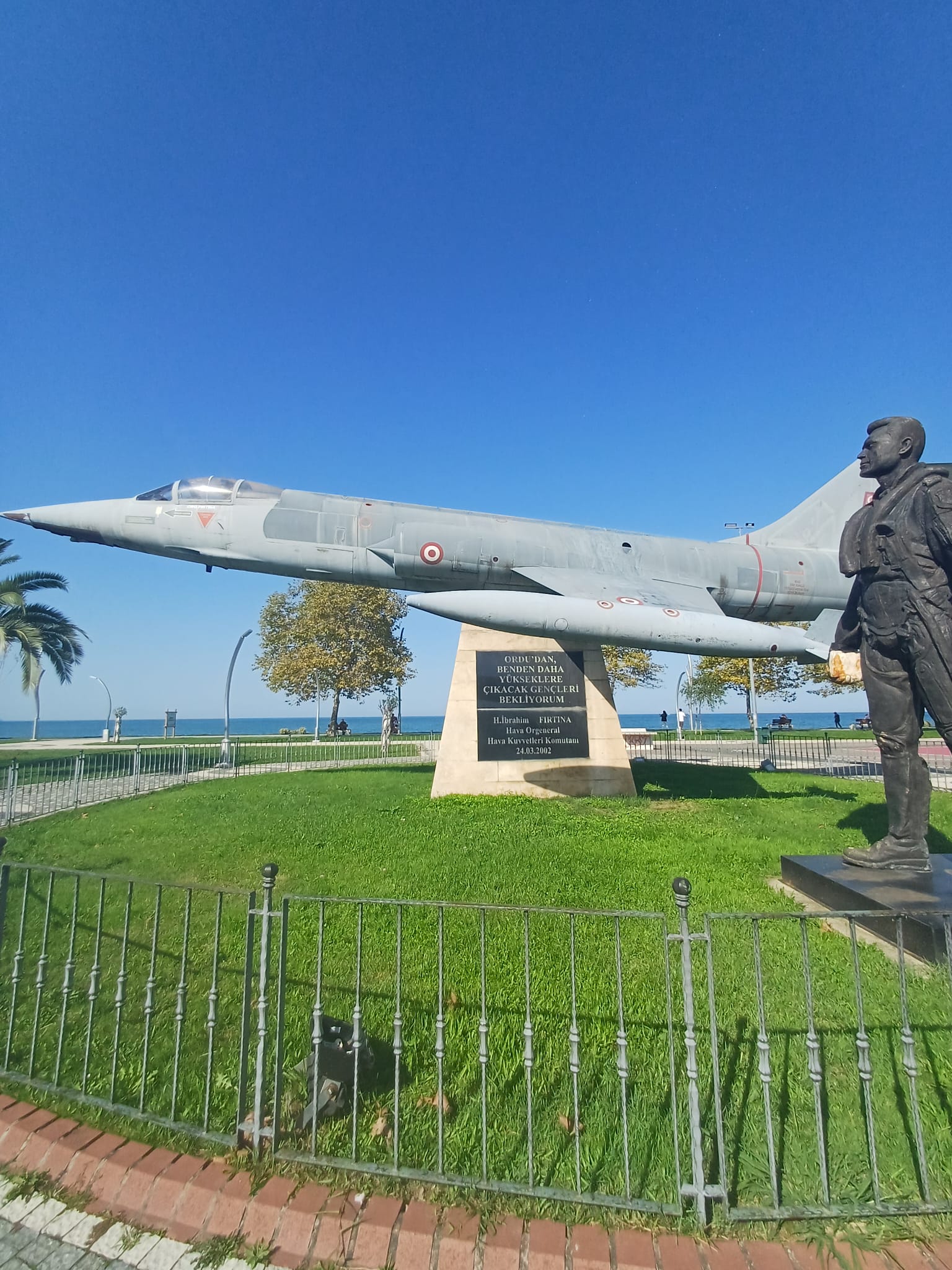 Orgeneral Halil İbrahim Fırtına'nın yaptırdığı Savaş Uçağı Anıtı, 2002 yılında Ordu Lisesi karşısına inşa ettirilmiştir. F-104 jet uçağının maketi bulunan anıtta, Atatürk'ün "İstikbal göklerdedir." sözü ve Fırtına'nın "Ordu'dan benden daha yükseklere çıkacak gençler bekliyorum." sözü yer almaktadır. Orgeneral İbrahim Fırtına anısına dikilen anıt, hem kendisinin şahsına duyulan saygının bir ifadesi hem de Türk ordusuna yapılan hizmetlerin sembolüdür. Anıt, ziyaretçilere hem tarihsel bir hatırlatma sunmakta hem de vatan savunmasında görev yapan askerlerin fedakârlığını temsil etmektedir. Bulunduğu çevreye estetik bir değer katarken aynı zamanda genç nesillere vatan sevgisini ve sorumluluk bilincini aşılamayı amaçlamaktadır. Askerî geçmişiyle Türk milletine örnek olmuş İbrahim Fırtına’nın adı, bu anıt sayesinde gelecek kuşaklara aktarılmaktadır. Anıt; Türk ordusunun disiplin, cesaret ve fedakârlık ilkelerinin somut bir göstergesi olarak büyük anlam taşır.