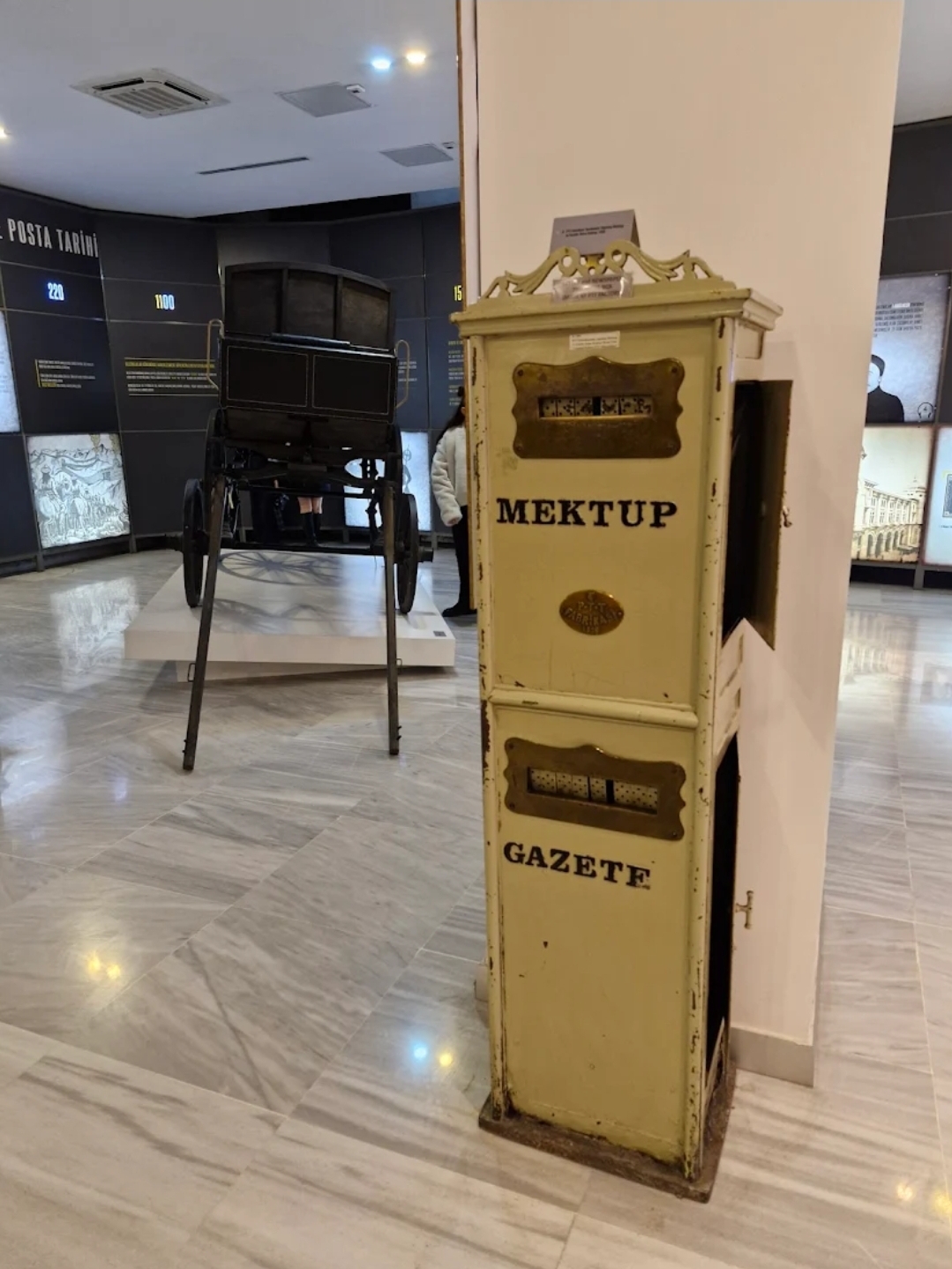Tarihî posta kutuları, telgraf makineleri, posta çantaları