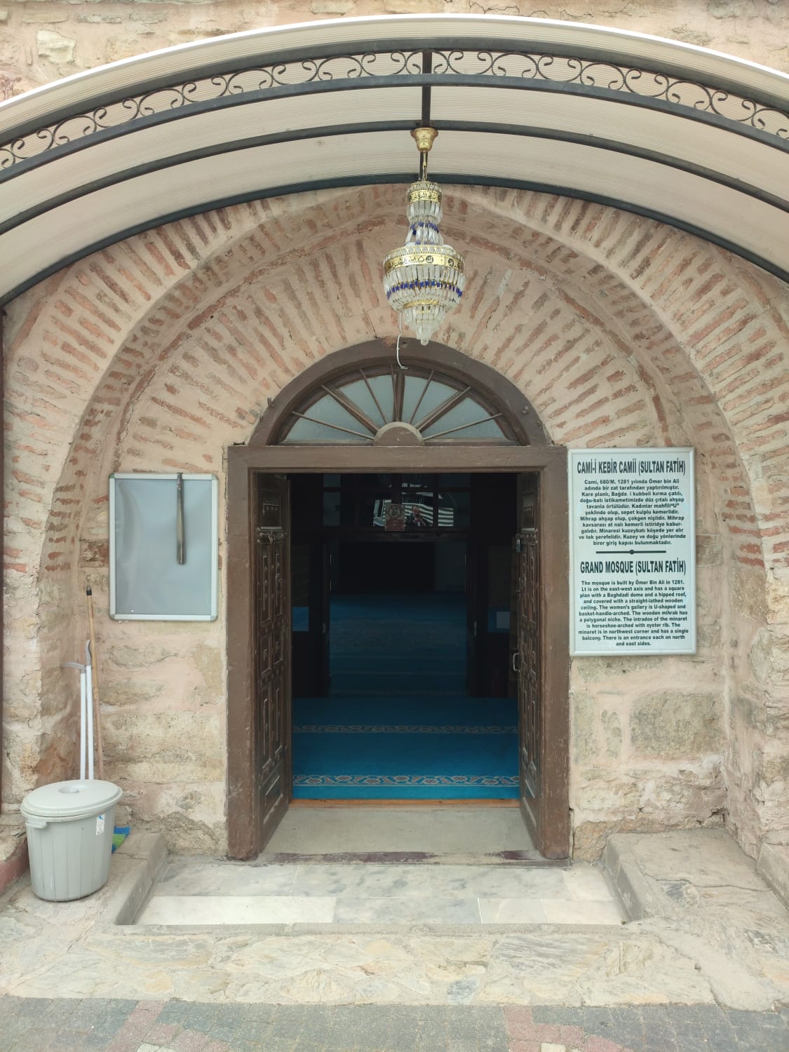 Ömer Bin Ali tarafından Cumhuriyet Meydanında yerleşim merkezinde düz bir alanda 1281 yılında yapılmış kare planlı, bağdadi kubbeli, kırma çatılı, çatısı çinko kaplı tek minareli bir camidir. M. 1455 tarihinde Fatih Sultan Mehmet zamanında M.1786 tarihinde ve 1925 tarihlerinde onarım gördüğü kitabe ve yazılı kaynaklardan anlaşılmaktadır. Cami kare planlı, ortada pandantif geçişli bağdadi büyük bir kubbe ile güney kuzey istikametinde ortadakiler oval olmak üzere üçer küçük kubbe, doğu-batı istikametinde düz çıtalı ahşap tavanlar örtülüdür. Kadınlar mahfili U şeklinde olup, sepet kulplu kemerlidir. Ortada yuvarlak balkonu vardır. Mihrap ahşap olup, çokgen nişlidir. Mihrap kavs arası alt nalı kemerli istiridye kaburgalıdır. Kemer köşelikleri bitkisel motiflerle bezelidir. Mihrap nişini saran bordürlerde bitkisel ve kıvrık dal motifleri ile spiral bezemeler bulunmaktadır. Yağlı boya ile boyalıdır. Minber ahşaptan yapılmış olup, iki yanda kafes bordürü olan korkulukları vardır. Köşkü soğan kubbecikle örtülüdür. Köşk altı, iki kenarda lale, ortada selvi motifleri olan kafes şeklindedir. 24 saat ibadete açıktır.