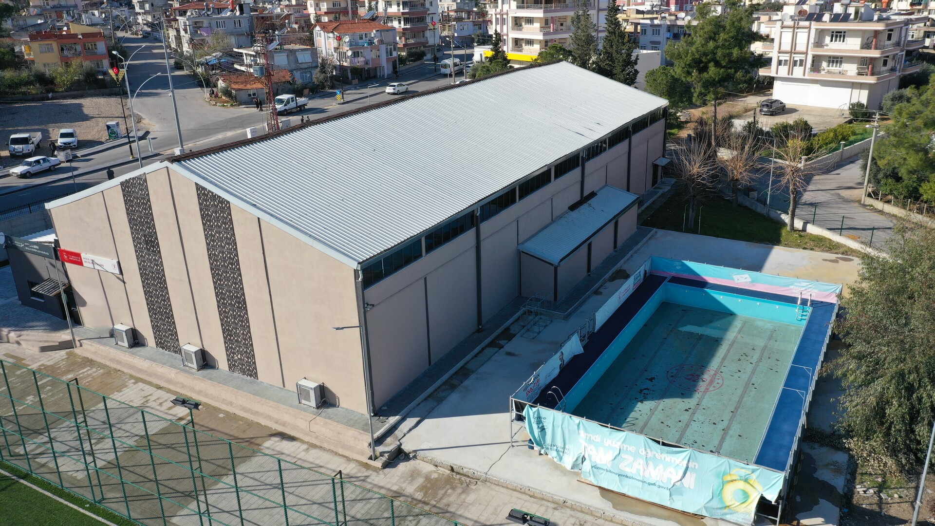 17x45 m ölçülerinde, PVC zemin kaplamalı, çok amaçlı bir spor salonudur. Basketbol, voleybol ve hentbol branşlarına uygun saha çizgileri ile profesyonel antrenman ve müsabakalara elverişlidir. Salon, iklimlendirme sistemiyle her mevsim hem sporculara hem de izleyicilere ideal bir spor ortamı sunmaktadır. 1 adet hakem odası ve 2 adet soyunma odası ile sporcuların ihtiyaçlarına yanıt vermektedir. 400 kişilik seyirci kapasitesi sayesinde geniş katılımlı organizasyonlara ev sahipliği yapabilen salonda yaz aylarında kullanıma açılan portatif bir yüzme havuzu da bulunmaktadır.