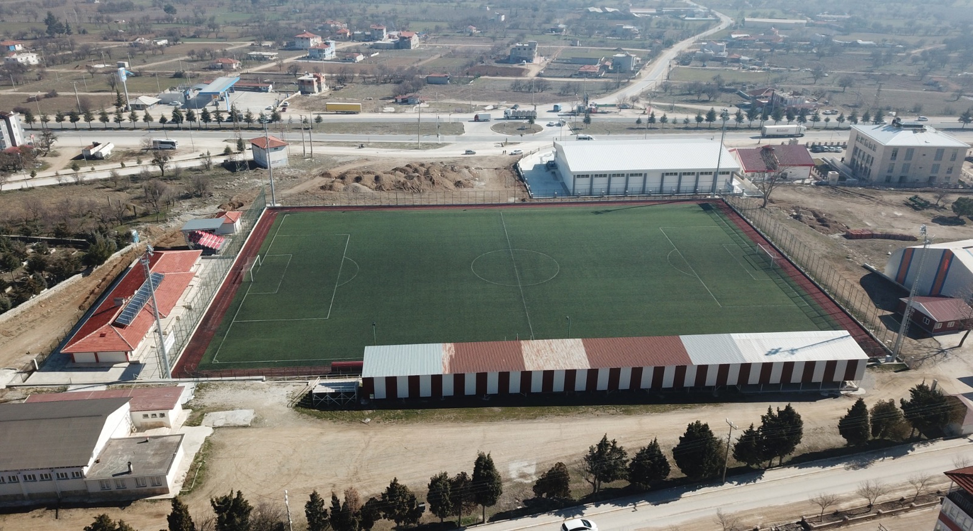 Tesisin Fiziki Özellikler: Sentetik çim yüzeyli futbol sahası(400 M2), Duş, Soyunma Odaları mevcuttur. Spor Yapılabilecek Açık Fiziksel Alan Sayısı: 1 Seyirci Sayısı: 1100 kişi Tesisimizde amatör lig maçları, Okul Sporları Yarışmaları, Önemli gün ve haftalara yönelik düzenlenen bayram törenleri (19 Mayıs, 29 Ekim,23 Nisan), Okul takımlarının Atletizm ve Futbol antrenmanları, Amatör Futbol Spor Kulüpleri ile Okul Mahalle Spor Kulüplerinin alt yapı sporcularının antrenmanları, halkın kullanımına açık serbest zaman faaliyetleri yapılmaktadır.