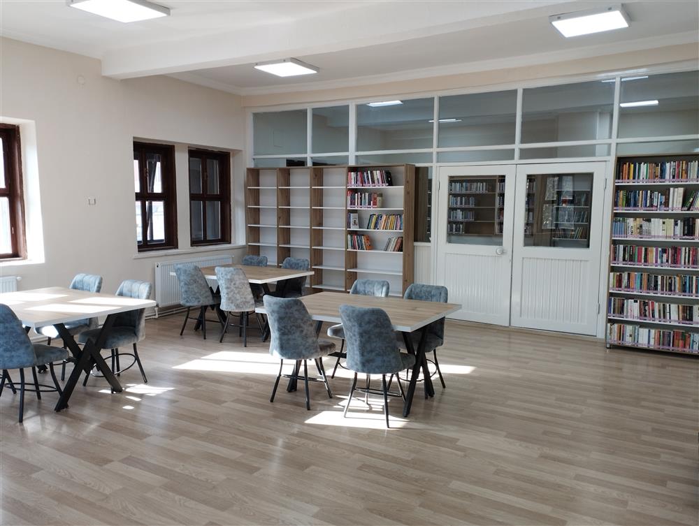 Okuyucu Salonu: Sessiz ve ferah bir ortamda ders çalışmak, kitap okumak ve araştırma yapmak için ideal bir alan sunar.